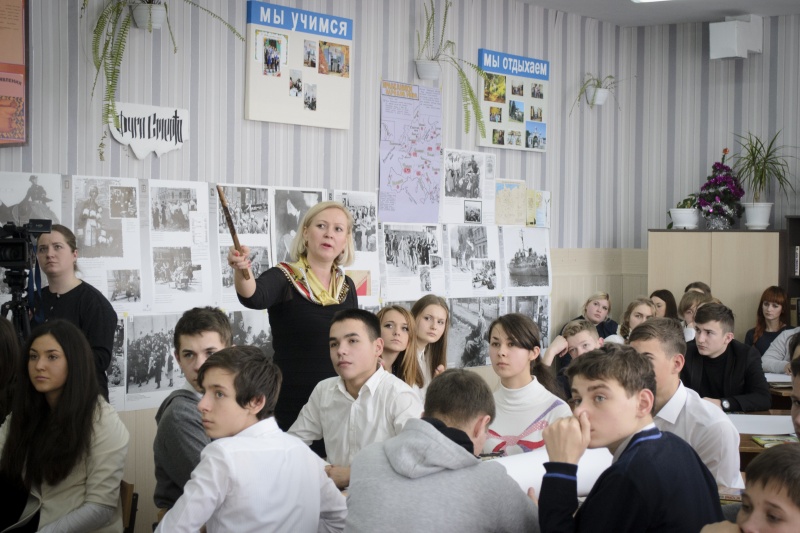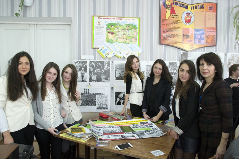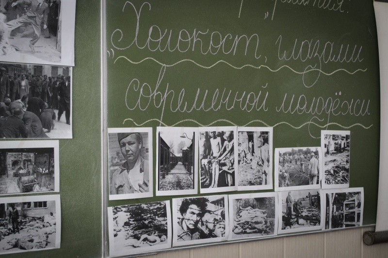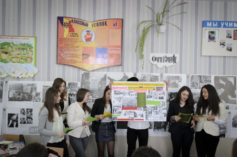 Мы не смеем забыть эту дату. В нашем лицее 27 января 2015 года состоялось мероприятие «Холокост глазами современной молодежи». После Второй мировой войны и Катастрофы европейского еврейства осталось множество фото документов. Организация выставки с использованием фотографий стала основной целью учителя, так как это прекрасная возможность без посредников, без субъективного или навязанного мнения прийти к собственному восприятию и осмыслению этих ужасных исторических фактов. Канва фотодокументов пролегла красной нитью в постерах учеников 9 «А» и 9 «Б» классов, задачей которых было с помощью слоганов, символов поэтического слова выразить свое отношение к Холокосту. Эмоции переполняли всех гостей мероприятия.15-1