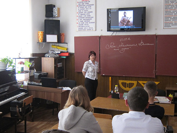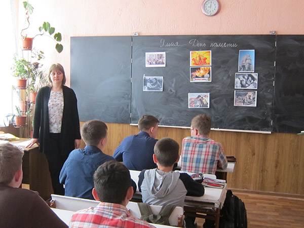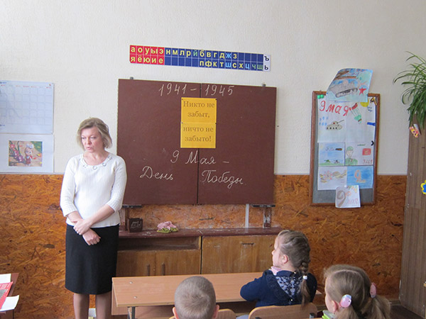 Начало декады было положено на единых «Уроках Мира», во время которых школьники знакомились с историей тех далеких событий. Учащиеся начальной школы приняли активное участие в выставке рисунков и поделок, участвовали в конкурсе стихотворений « Этих дней не смолкнет слава», и устроили книжную выставку произведений военных лет.