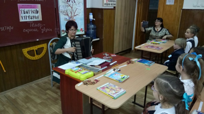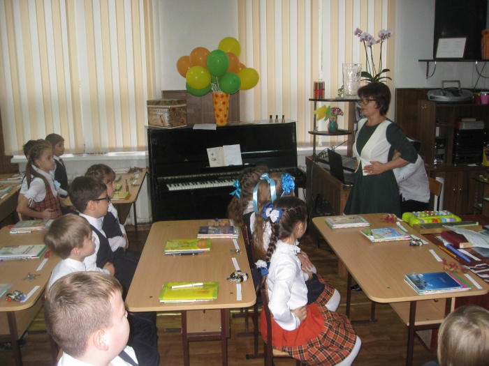 Урок состоял из нескольких частей: пение, слушание музыки, игра на музыкальных инструментах, нотная грамота, вокальное исполнение.